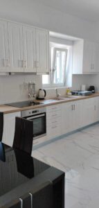 he Rock Seaside House is a private seafront home located just a few meters from the sandy beach. It offers two bedrooms, two bathrooms and a sofa bed. Set in a quiet coastal area, it sits right beside the sea, where the water displays beautiful shades of blue and remains calm and clear. Perfect for families with small children and ideal for small celebrations such as birthdays or anniversaries. Can also be combined with nearby accommodations for larger groups or big families. Year of renovation: 2021